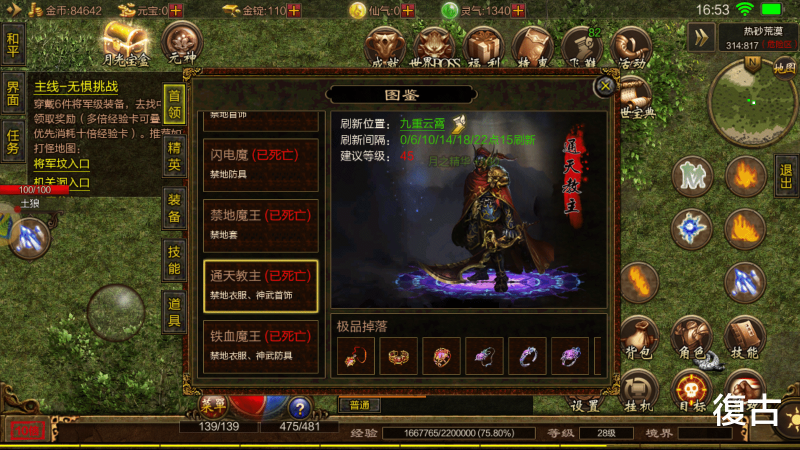 在咱们这个游戏里面的通天教主作为非常厉害的一个boss,真的是难倒了一大批玩家,如果大家想击败通天教主的话,建议是等达到45级之后再进行,并且咱们是有很多个时间段可以去打。击败通天教主,我们可以掉落一些极品装备,神武装备、幻魔装备、天玄装备或法神装备等等。