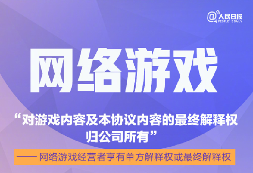 游戏日报讯 3月15日消息,人民日报官博点名了8个消费领域典型霸王条款,其中包含网络游戏“对游戏内容及本协议内容的最终解释权归公司所有”。