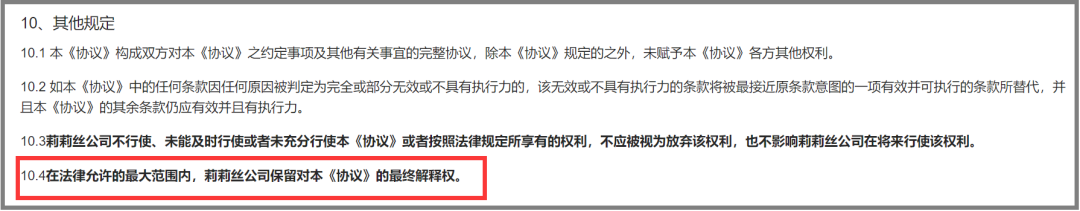 针对“最终解释权”,游戏日报筛选查找了10家重点游戏公司重点产品的服务条款,其中腾讯游戏、网易游戏、米哈游、完美世界游戏、盛趣游戏、恺英网络、心动网络、叠纸网络均未提及该词,但莉莉丝、游族网络服务条款中仍涉及相关事项。