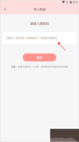 3、快速的输入,快应用-大姨妈来了的关键词,就能获取提取码,节奏点击导入就能继续进行下一步操作。