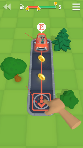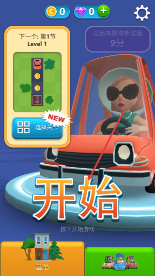 2、 指尖滑动屏幕灵活地操控车辆进行移动,同时也需要收集金币;