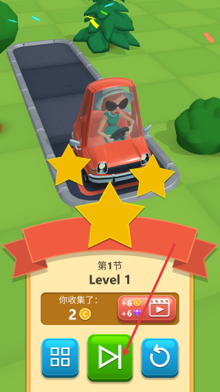 3、 完成关卡任务后将会获得评价,点击青色图标继续挑战下一个关卡;