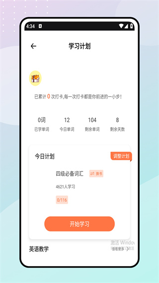 1、点击进入首页,用户会看到英语单词库板块,方便用户学习记单词;