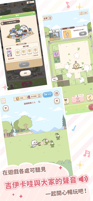 1、一起走进吉伊卡哇的可爱世界,勇敢挑战讨伐任务,打败那些捣乱的坏蛋,拿到丰厚奖励;