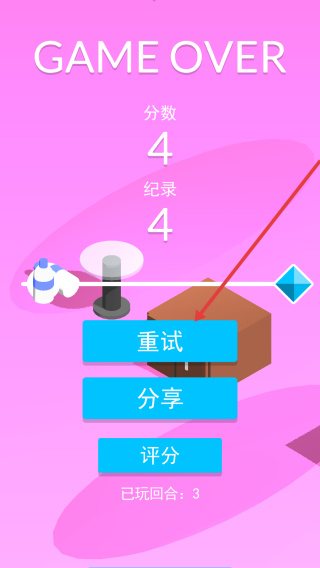 3、最后结束游戏后如果你想继续挑战更高的记录可以点击重试来重新开始游戏并进行挑战。