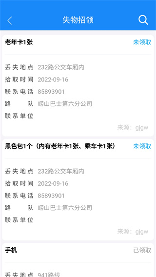 5、如不见物品还可点击进入失物招领查询相关信息。