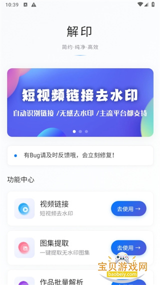 《解印去水印》是一款免费的水印软件,丰富的水印款式还支持批量解析下载,有着超便捷式的操作页面呈现,优质的去水印效果,搞笑的处理功能,帮助快速的消除水印,回复原本的央视,超实用的日常工具。