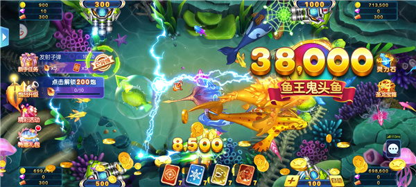 3、只要多捕鱼就能赚金币、拿道具,还有机会抓到特别的鱼,玩越久赚越多;