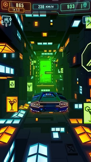 《霓虹飞车》是一款以复古和未来的科技感为主题的赛车竞速和障碍躲避手游,以赛博朋克风格的赛道为主题,在陶醉的霓虹世界中驾驶各种未来感的载具和灵活地躲避障碍和随时移动的桥梁,同时还可以利用道具加速冲向终点。