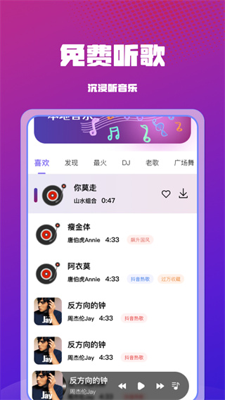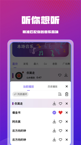 4、随着大量的音乐曲库资源,用户可以随时随地的开启听歌模式,享受乐趣。