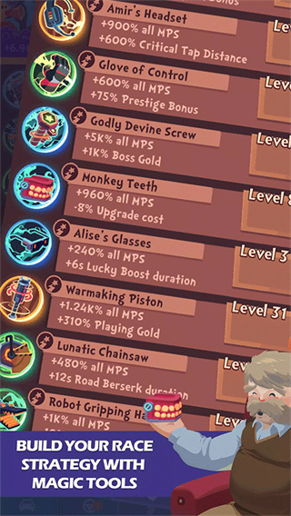 2、采用了休闲的放置点击玩法,只需要手指点击屏幕就可进行竞速;