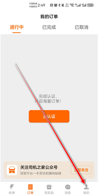 1、打开《货拉拉司机版》APP,点击我的来更换手机号;
