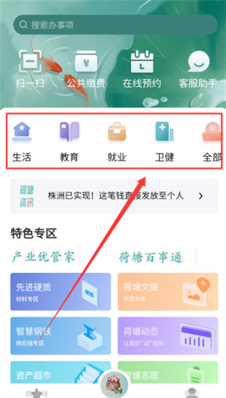 3、设置了办事专区,选择自己想要的服务,用户可以快速解决。