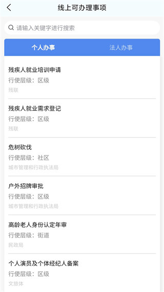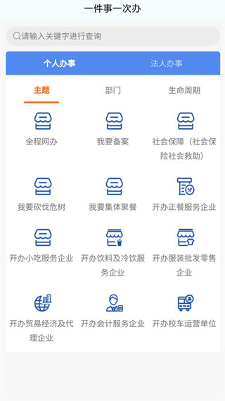 1、我的政务,实现“一件事一次办”,在办事板块中按高频办事项以及部门查询各类行政审批和公共服务事项的办事指南。